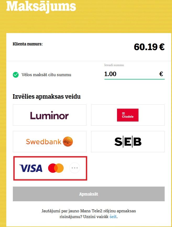Kā es varu samaksāt rēķinu un kāds ir Tele2 bankas konts?