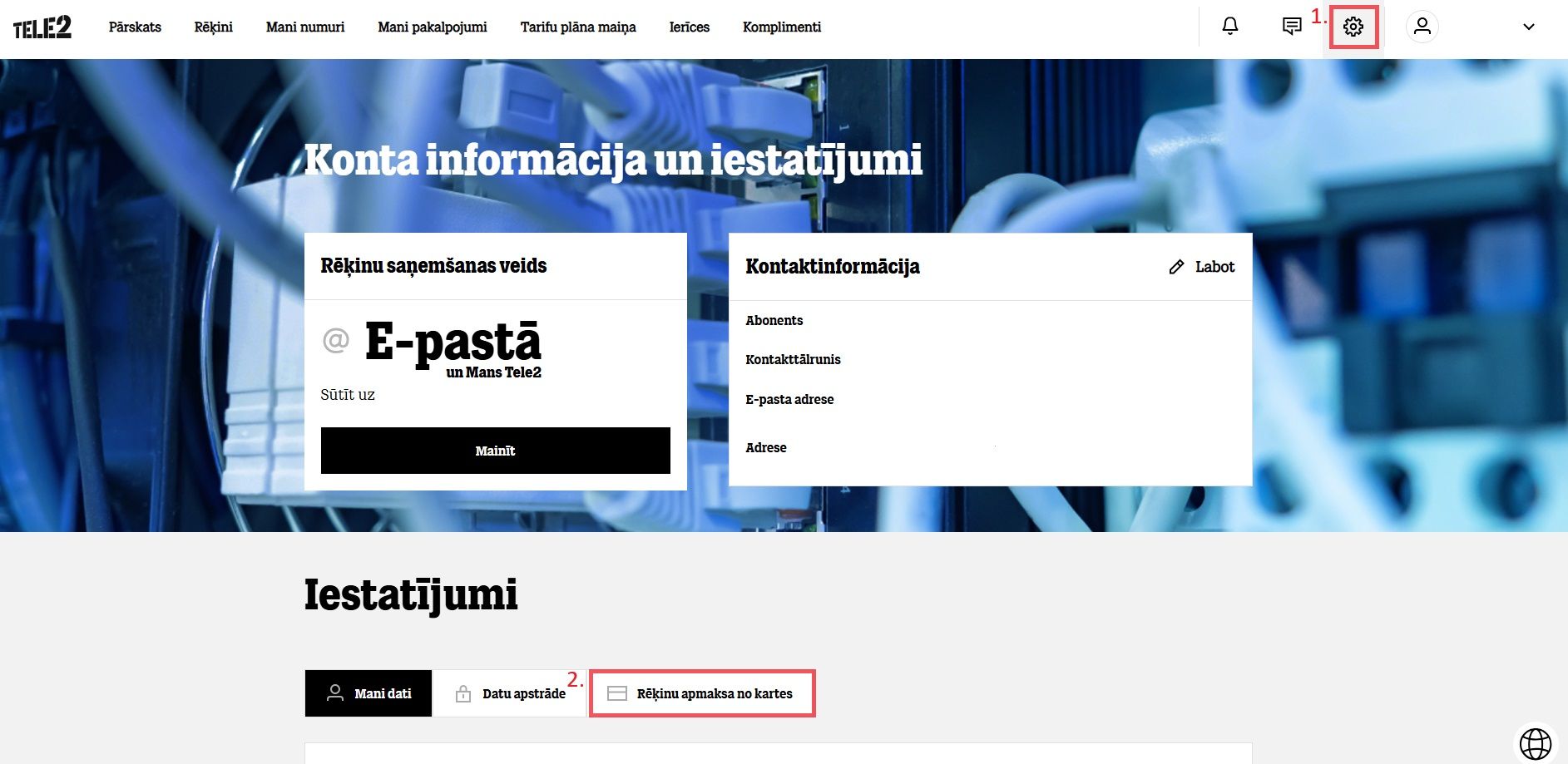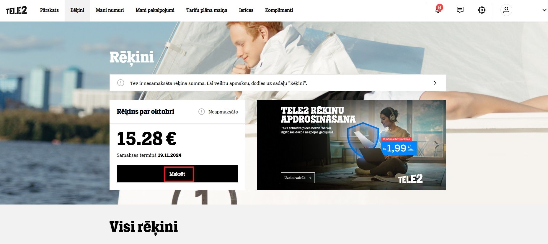 Mans Tele2 nekur neatrodu savu rēķinu, nav tādas sadaļas “Rēķini”.