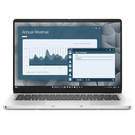 Dell Pro 14 AG ir precīzi izstrādāts biznesa klēpjdators, radīts profesionāļiem, kuriem veiktspēja ir prioritāte, neupurējot pārnesamību. Šis Dell Pro sērijas modelis apvieno elegantu dizainu ar jaudīgiem produktivitātes rīkiem, nodrošinot uzticamu sabiedroto gan biroja vidē, gan darbam ceļā. Uzsvars uz mākslīgā intelekta (AI) virzītu efektivitāti ļauj šim modelim izmantot AMD jaunāko Ryzen sēriju, lai viegli apstrādātu sarežģītas darba plūsmas, bet vieglais korpuss nodrošina mobilitāti. Tā pievilcības pamatā ir visprogresīvākās aparatūras un intuitīvu funkciju apvienojums, kas pielāgotas, lai racionalizētu profesionālās darbības.