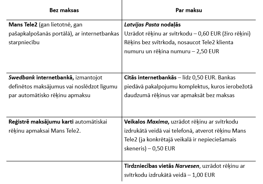 Kur varu samaksāt Tele2 rēķinu?