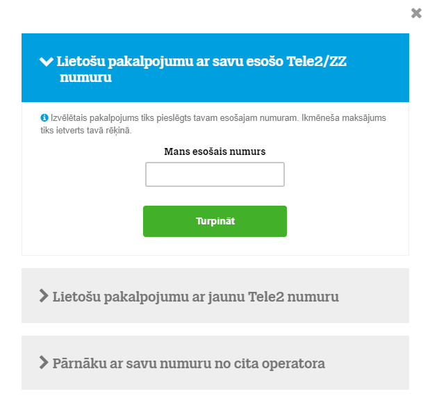 Vēlos pieslēgumu ar jaunu numuru pie Tele2.