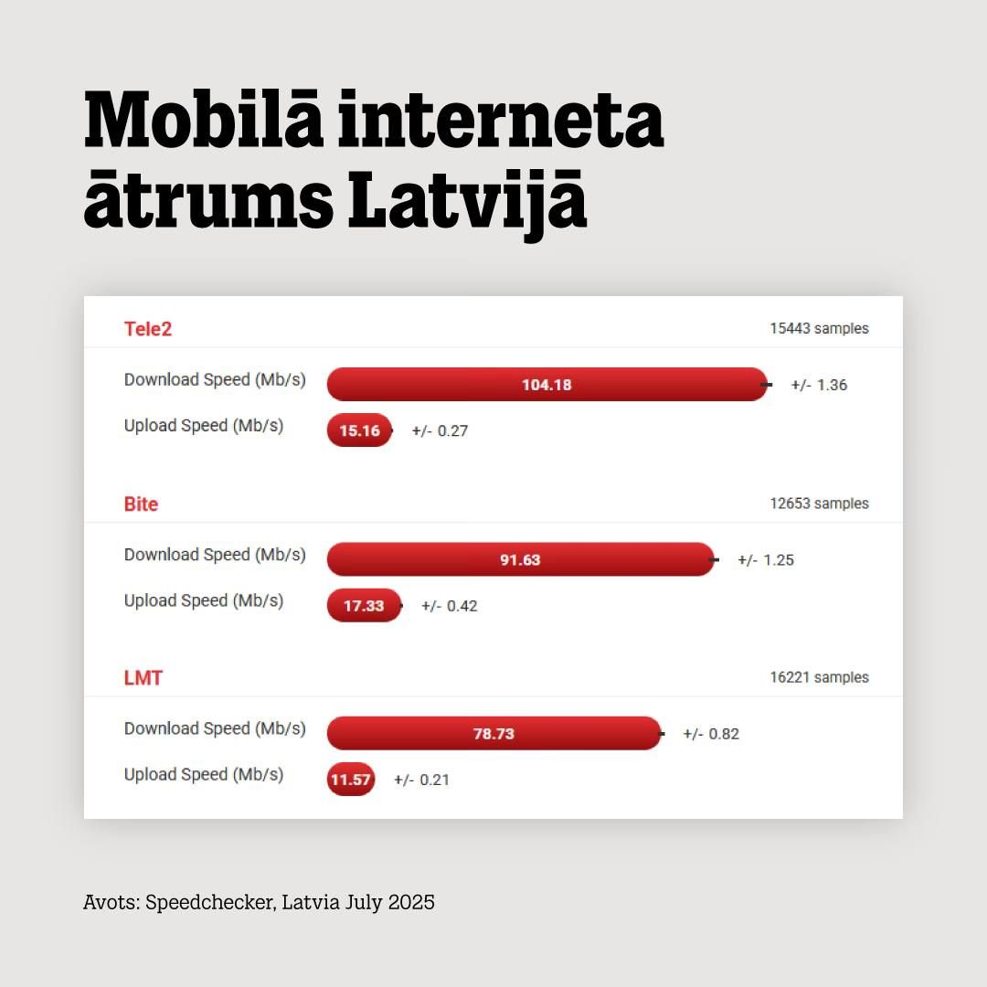 Uzņēmums “SpeedCheker” katru gadu publicē mobilā interneta ātruma mērījumus, kas iegūti no mobilo sakaru pakalpojumu lietotāju datiem. Jaunākie ikgadējie dati rāda, ka “Tele2” ir līderpozīcijās mobilā interneta lejupielādes ātruma ziņā Latvijā.