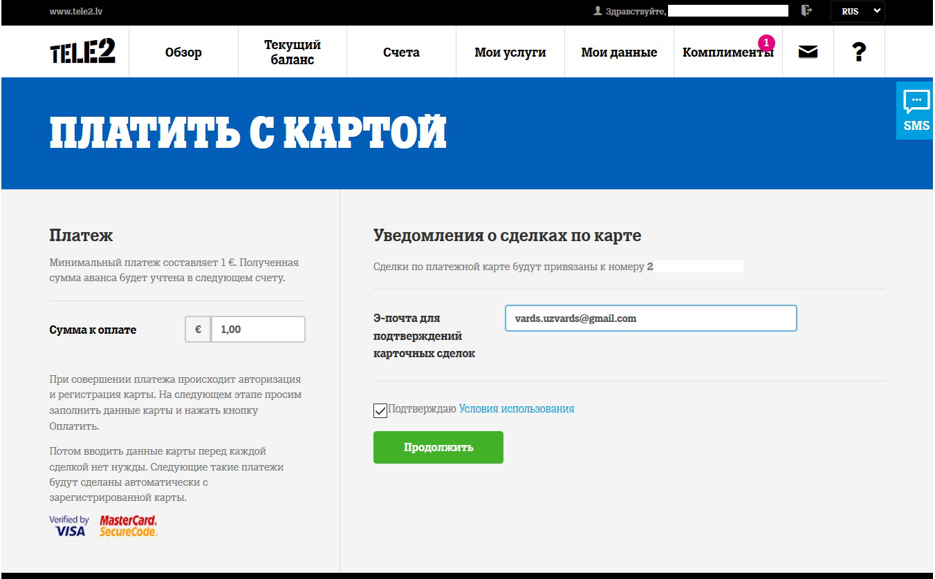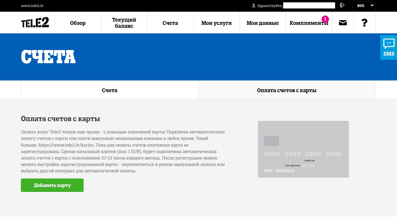 Kā piesaistīt maksājumu karti Mans Tele2 rēķinu apmaksai?