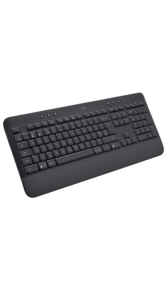 Kādēļ ir vērts pārslēgties uz tastatūru? K650 risina bezvadu perifērijas ierīču izplatītos sāpju punktus, izmantojot intuitīvus un inovatīvus risinājumus. Atšķirībā no iepriekšējiem modeļiem tā uzlabotais plaukstas balsts nav aizdomīgs — tas ir dziļi polsterēts un nemanāmi integrēts, piedāvājot konsekventu atbalstu, kas konkurē ar īpašiem ergonomiskiem piederumiem. Lai gan konkurenti var dot priekšroku plāniem profiliem vai spilgtajam RGB apgaismojumam, Logitech dubulto praktiskumu: pret izšļakstīšanos izturīgā virsma novērš nejaušas kafijas šļakatas, savukārt pilna izmēra izkārtojums ar ciparu tastatūru nodrošina nekādus kompromisus attiecībā uz funkcionalitāti.