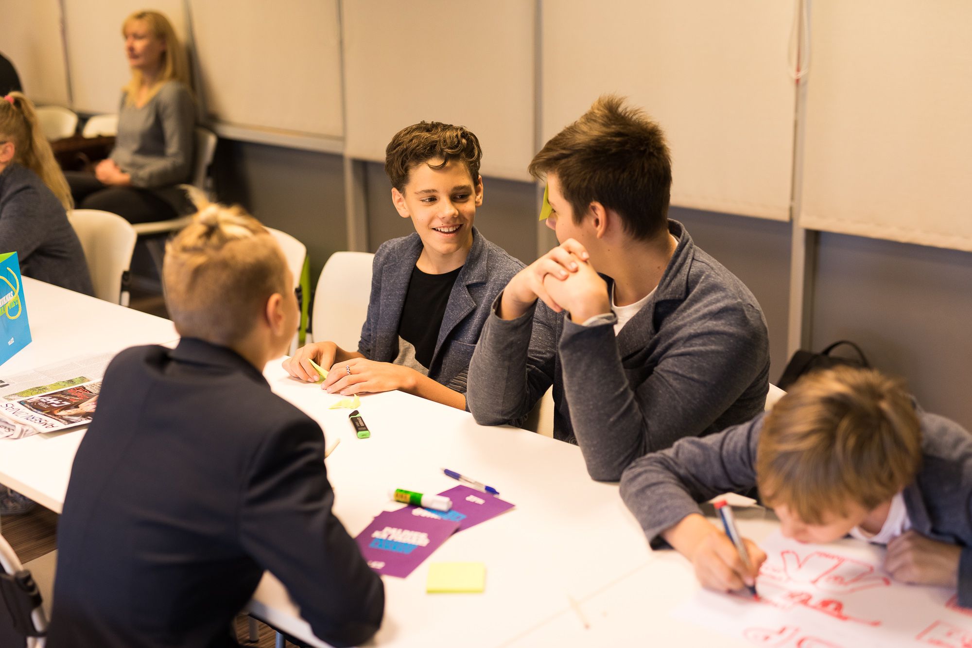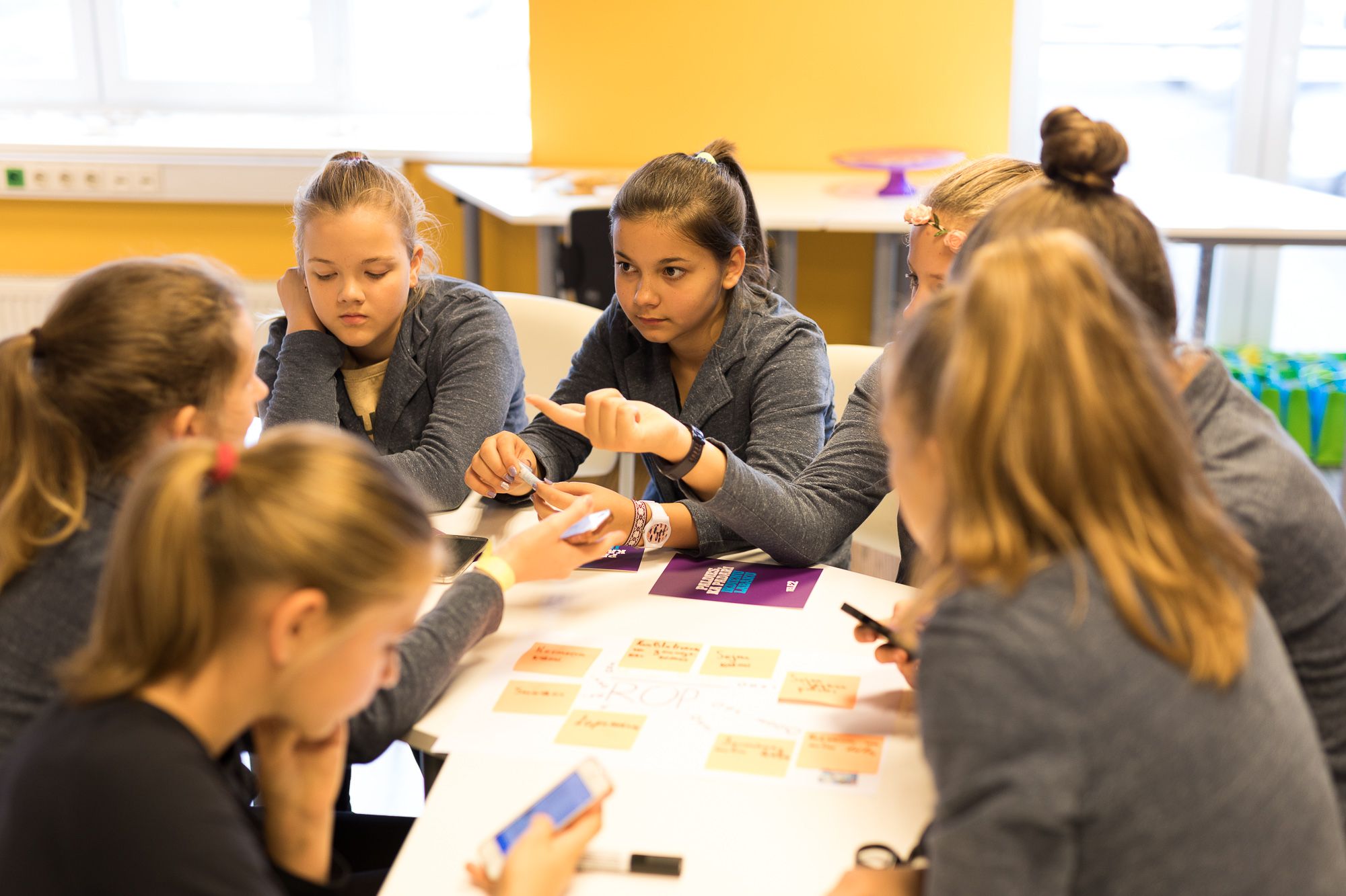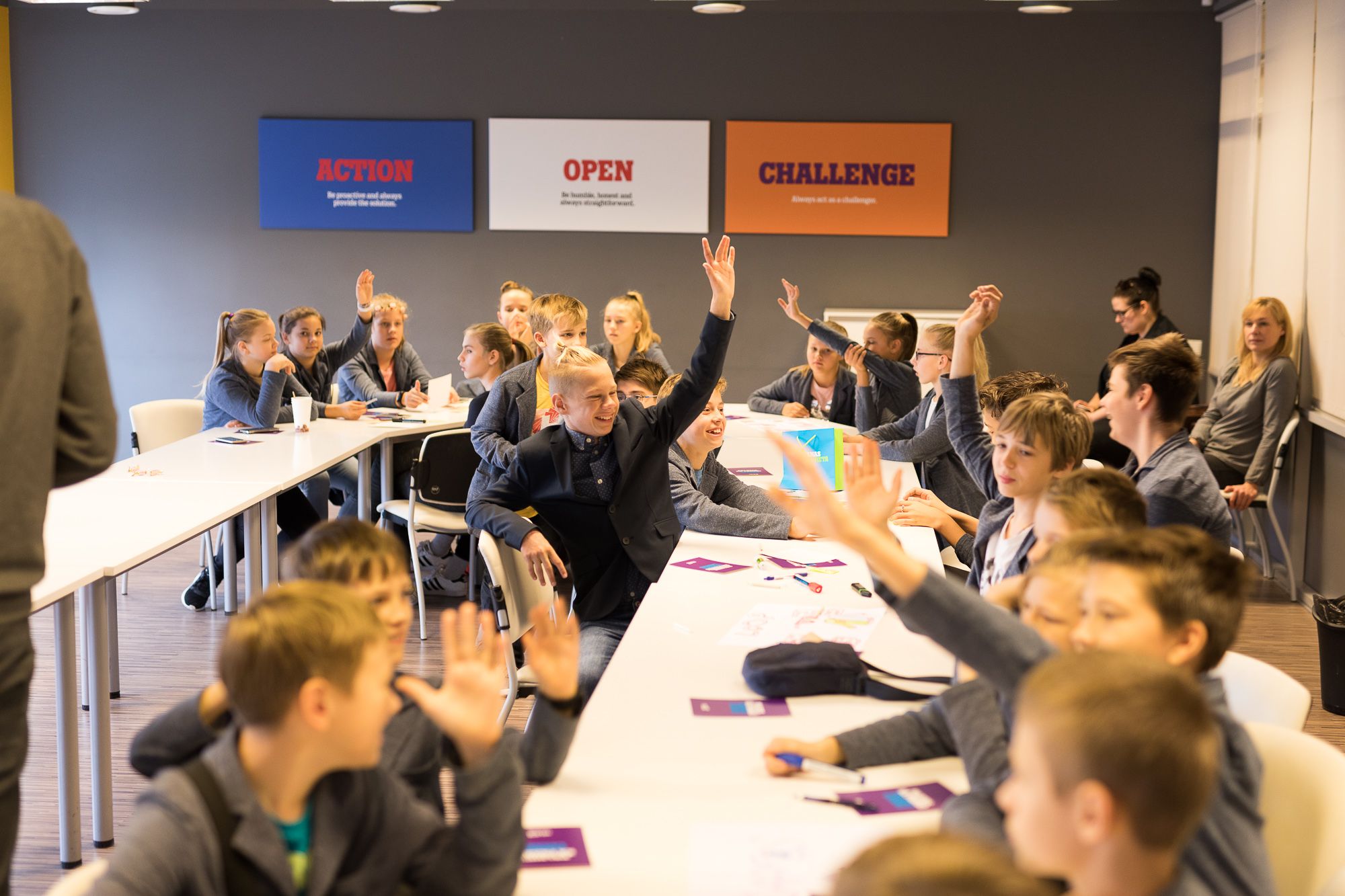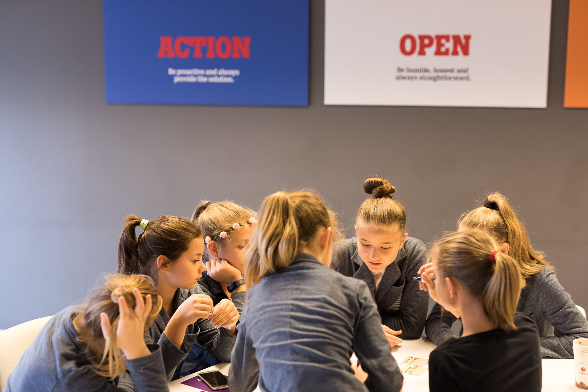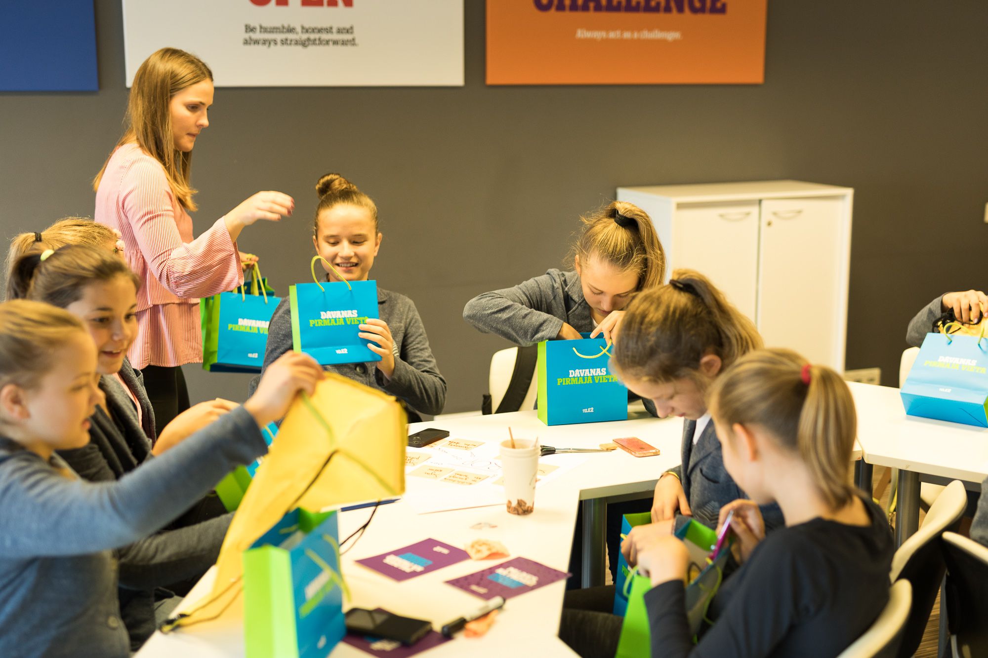 Mēs sagatavojām skolēniem aizraujošu ieskatu “Tele2” dzīvē, kā arī iesaistījām skolēnus vairākās aktīvās nodarbēs, ne vien liekot viņiem “kustināt” prātus, bet arī mācot strādāt komandā. Pēc neliela ieskata “Tele2” ikdienā un darba vidē, Mežciema pamatskolas audzēkņi tika sadalīti grupās, kurās viņi varēja attēlot savu sapņu darba vietu, dalījās ar idejām par nākamā ZZČ norisi un izstaigāja visus uzņēmuma departamentus, kuros spēles formātā meklēja dažādus objektus un atbildēja uz āķīgiem jautājumiem.