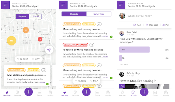 - saņemt brīdinājumu par bīstamām vietām, balstoties uz citu sieviešu internetā atstāto informāciju.